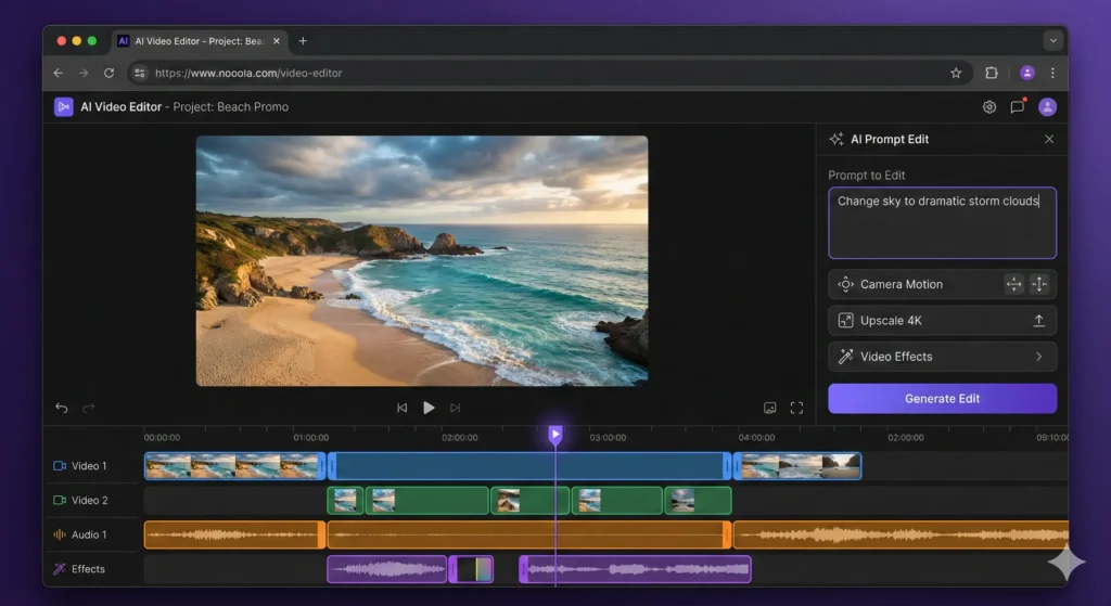 Previously, if Firefly generated a video with the wrong sky color, you’d regenerate the entire clip. Now you can type “change the sky to overcast” and Firefly edits just that element. I tested this by generating a beach scene, then prompting “add dramatic storm clouds.” The edit took 30 seconds and maintained continuity with the original footage.