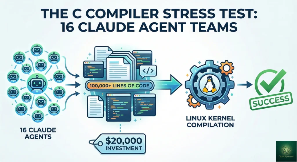 Before launching Agent Teams publicly, Anthropic researcher Nicholas Carlini stress-tested the system with an ambitious task: 16 Claude agents building a Rust-based C compiler from scratch, capable of compiling the Linux kernel.