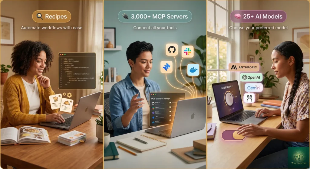 Three features set Goose apart: Recipes, MCP integration, and model flexibility