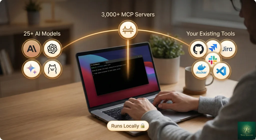 πŸ”Œ Key strength: 3,000+ MCP tool connections (GitHub, Slack, Jira, Docker) + works with any AI model (Claude, GPT, Gemini, local).