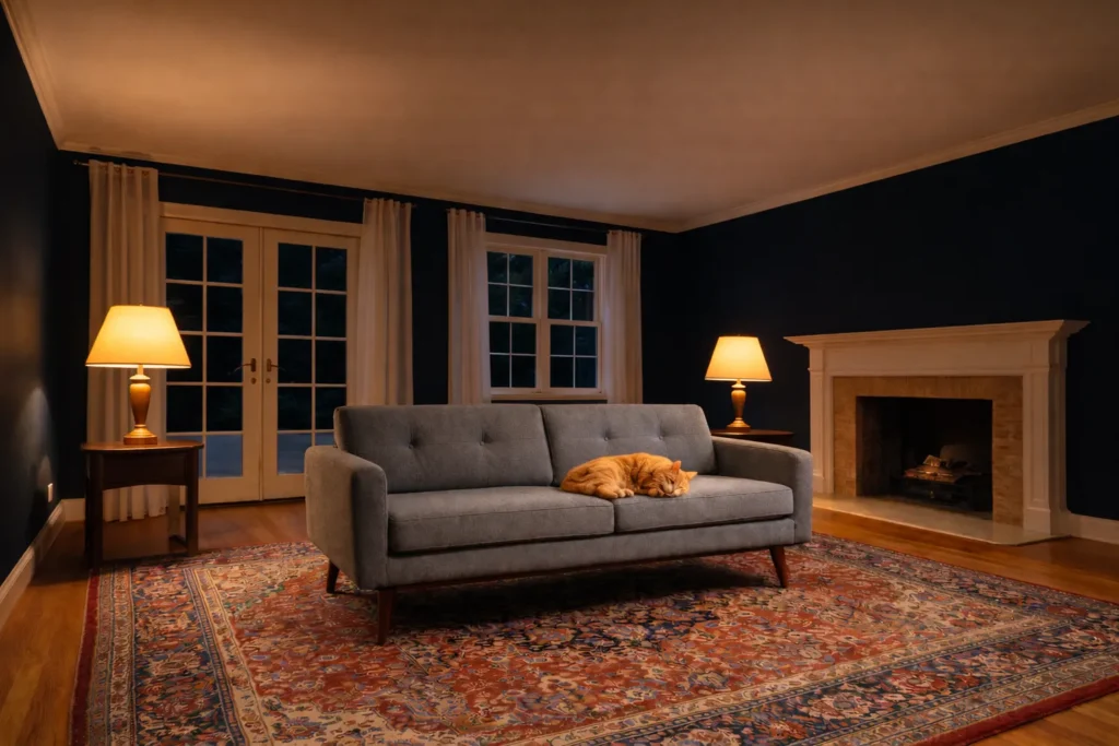 The Result: GPT-Image-1.5 was masterful here. By step 5, I had a navy-walled room at night, with the exact same grey sofa and rug I asked for in steps 1 and 2. The consistency was eerie. It didn’t generate a new sofa; it lit the existing sofa differently. This implies the model is building a sort of internal 3D representation of the scene.